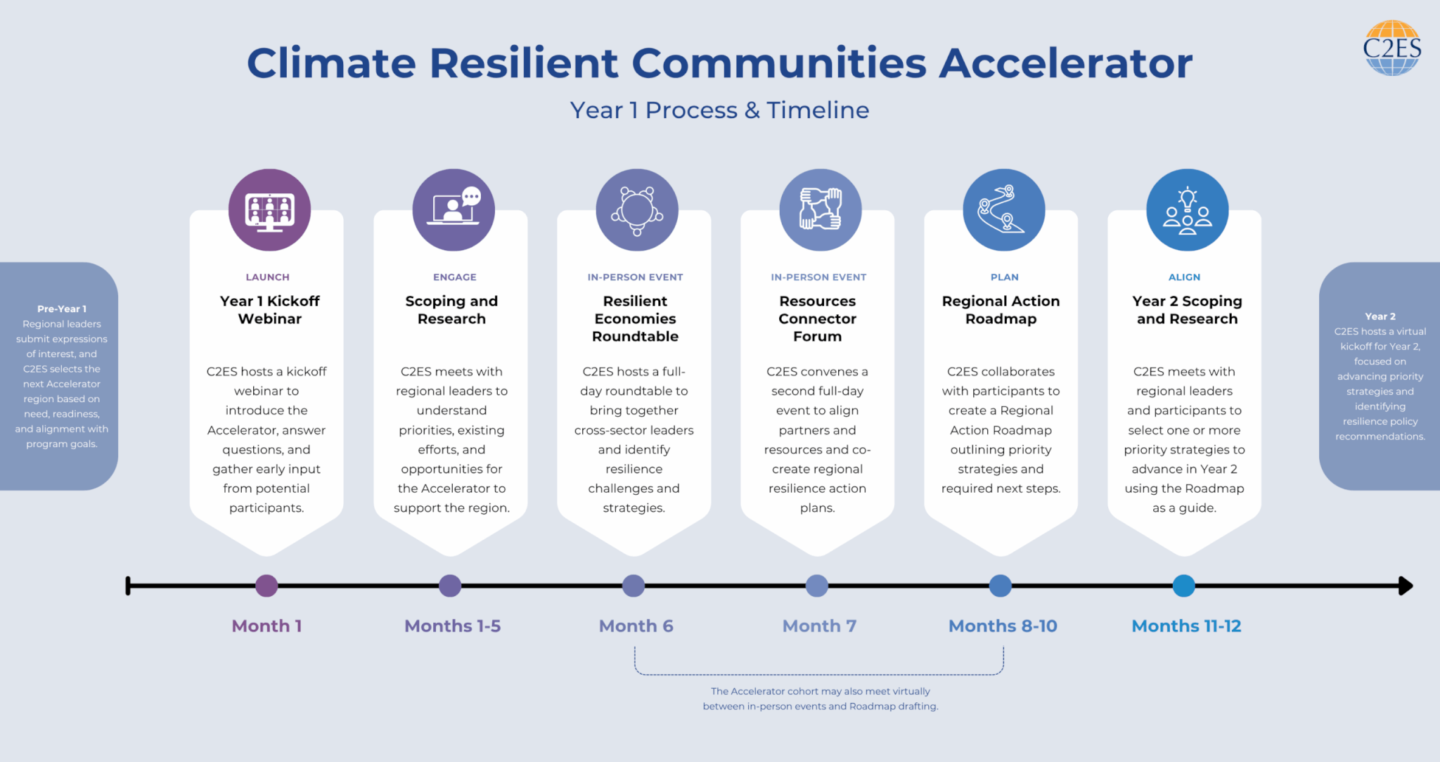In September 2025, C2ES launched the third Climate Resilient Communities Accelerator program in the Austin-San Antonio region of Texas to support leaders from a wide range of sectors prepare for climate and extreme weather impacts.