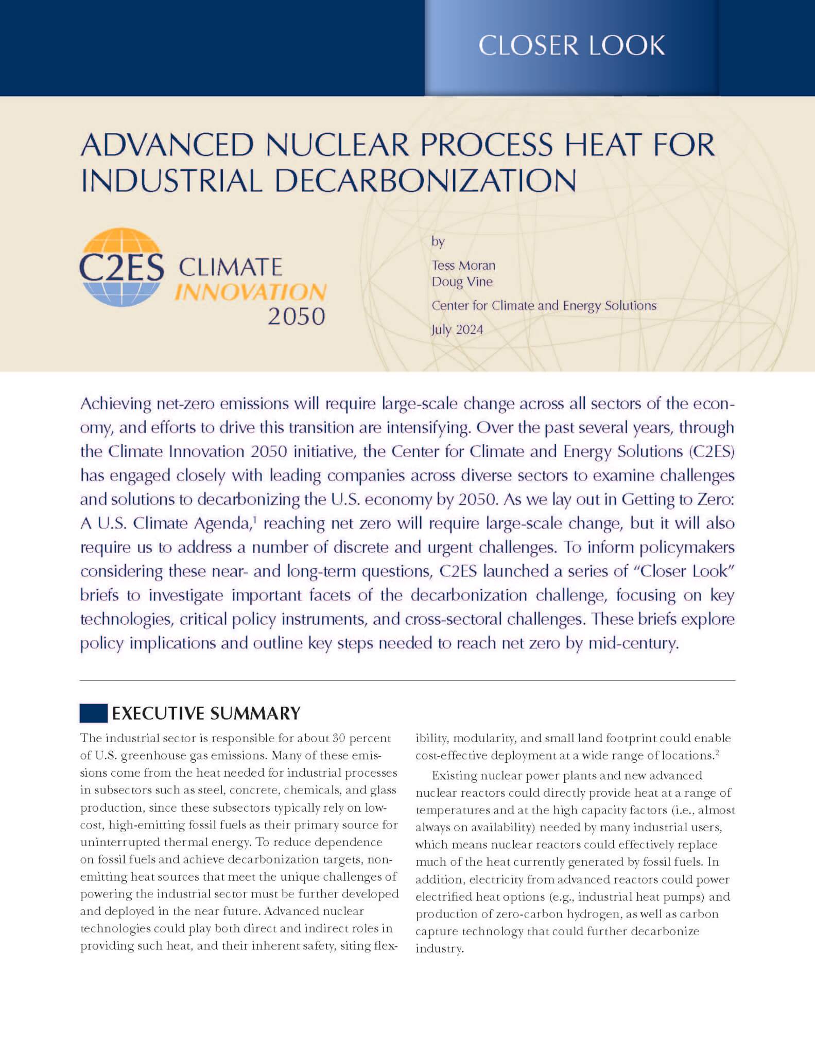 Industrial decarbonization is key to the United States achieving its 2050 net-zero climate target. Advanced nuclear technologies, if adequately supported and developed, could complement an array of other clean energy technologies in making such decarbonization a reality while supporting increased U.S. energy security and economic growth.