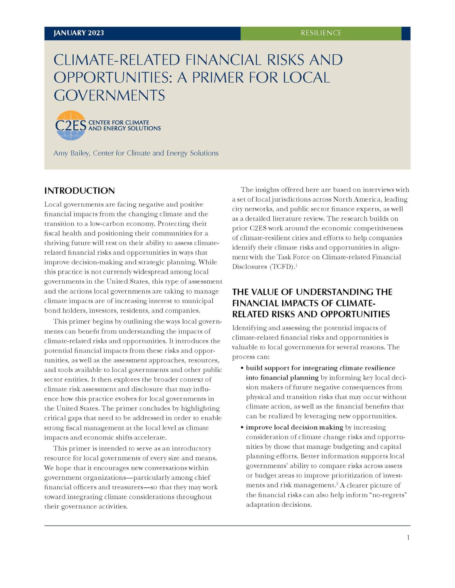 This C2ES primer is designed to help communities protect their fiscal health and position themselves for a thriving future by better identifying and assessing financial risks and opportunities related to climate change.