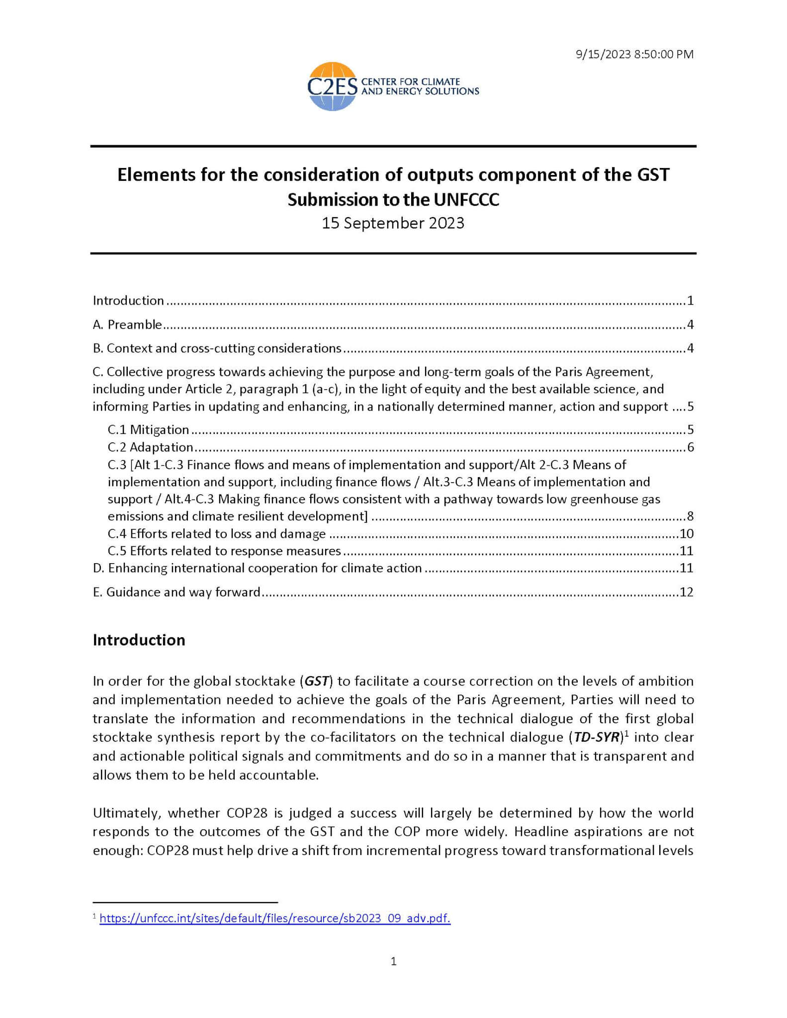 C2ES submitted this paper to the UNFCCC on September 15, 2023.