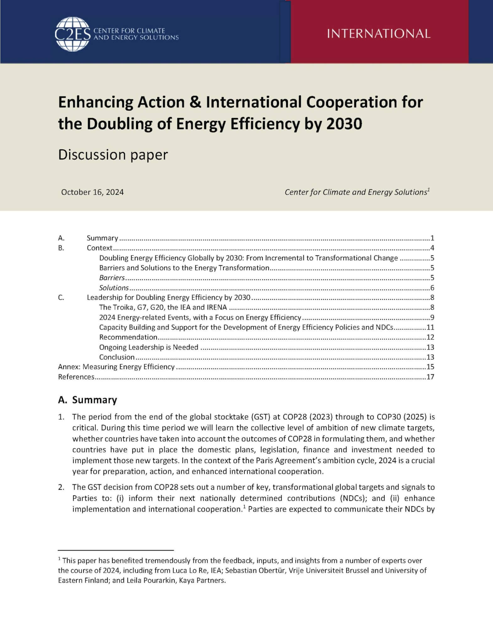 • focuses on the GST decision’s call to Parties to contribute to, in a nationally determined manner, the doubling of energy efficiency globally by 2030 (that is, doubling the global average annual rate of energy efficiency improvements)
