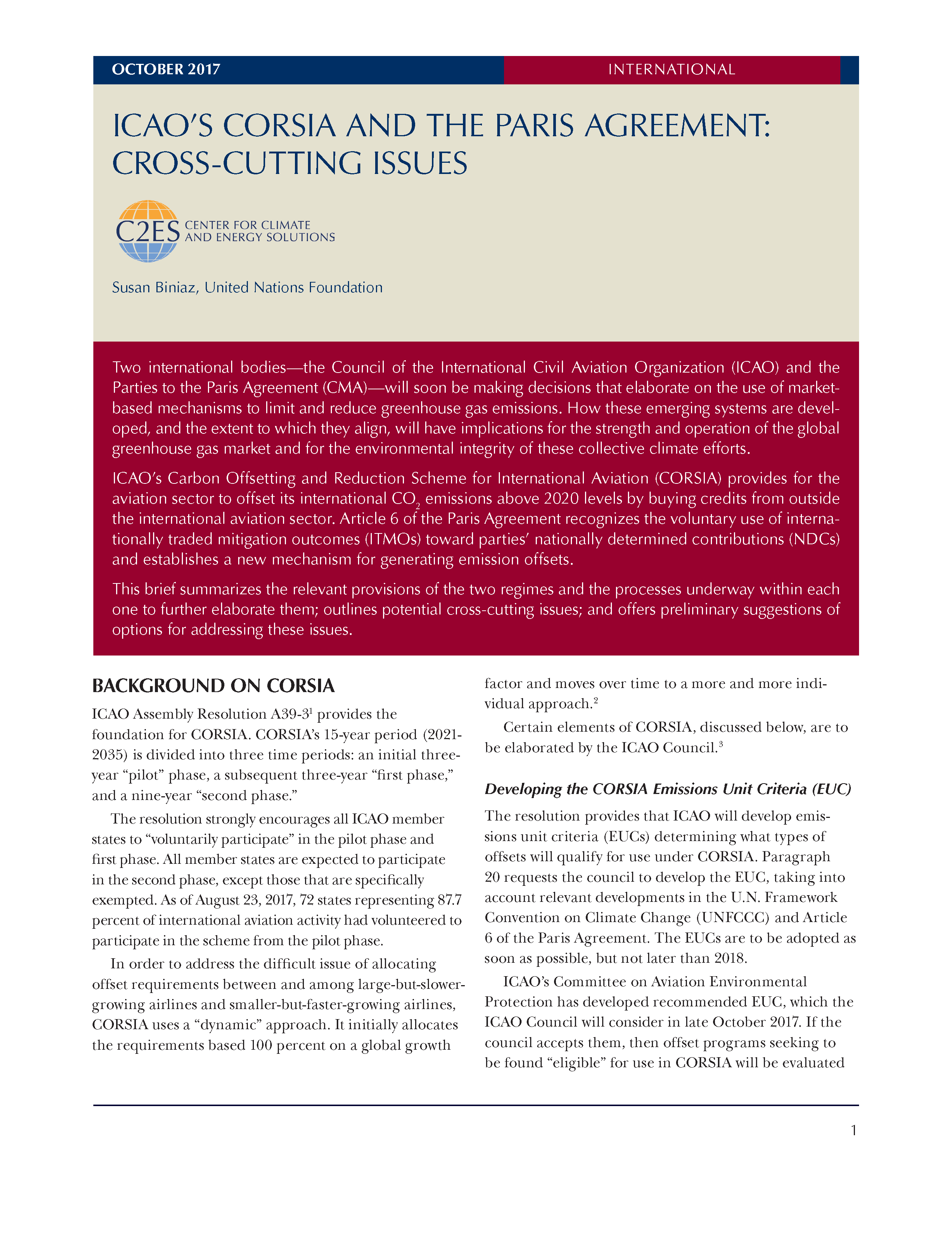 Two international bodies—the Council of the International Civil Aviation Organization (ICAO) and the Parties to the Paris Agreement (CMA)—will soon be making decisions that elaborate on the use of market-based mechanisms to limit and reduce greenhouse gas emissions. How these emerging systems are developed, and the extent to which they align, will have implications for the strength and operation of the global greenhouse gas market and for the environmental integrity of these collective climate efforts.