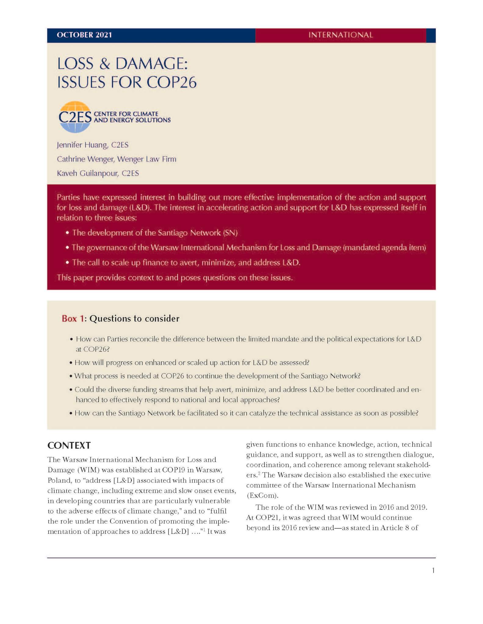 Loss & Damage: Issues for COP26