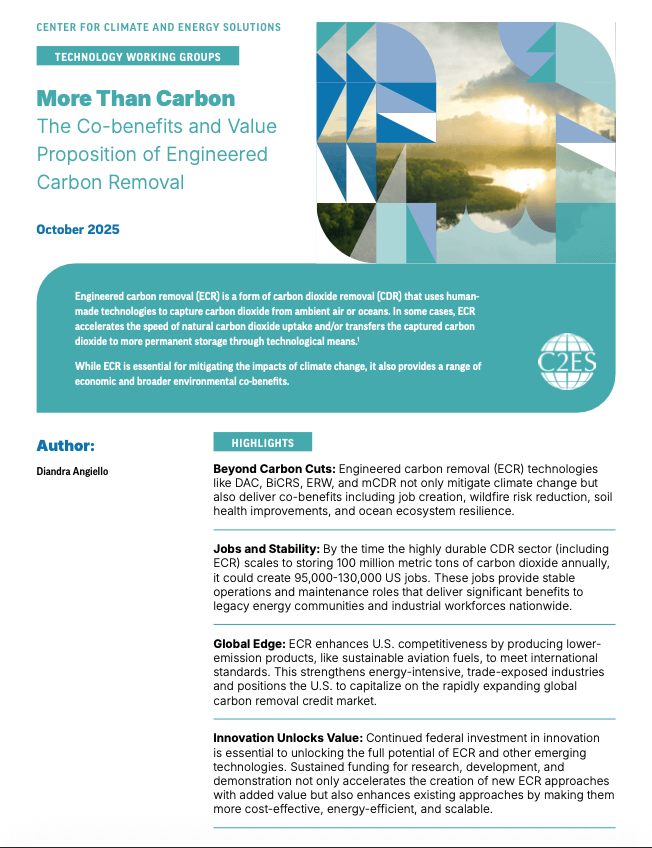 Engineered carbon removal (ECR) is a form of carbon dioxide removal (CDR) that uses human- made technologies to capture carbon dioxide from ambient air or oceans. In some cases, ECR accelerates the speed of natural carbon dioxide uptake and/or transfers the captured carbon dioxide to more permanent storage through technological means. While ECR is essential for mitigating the impacts of climate change, it also provides a range of economic and broader environmental co-benefits.