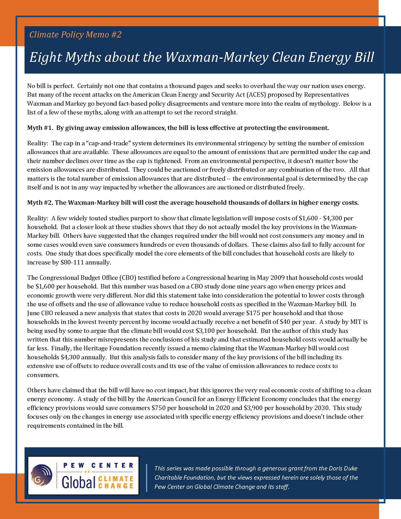 This series was made possible through a generous grant from the Doris Duke Charitable Foundation, but the views expressed herein are solely those of the Pew Center on Global Climate Change and its staff.