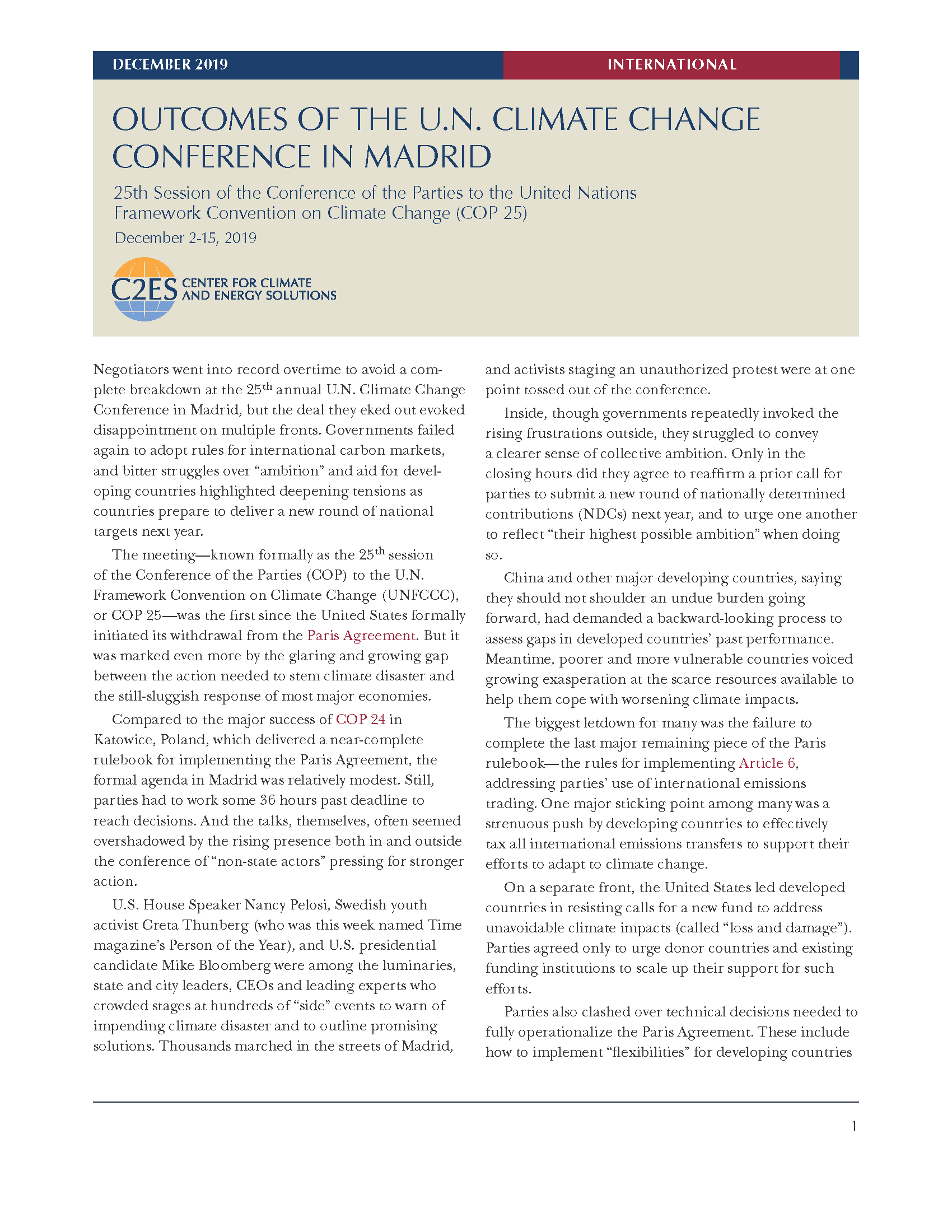 The meeting—known formally as the 25th session of the Conference of the Parties (COP) to the U.N. Framework Convention on Climate Change (UNFCCC), or COP 25—was the first since the United States formally initiated its withdrawal from the Paris Agreement. But it was marked even more by the glaring and growing gap between the action needed to stem climate disaster and the still-sluggish response of most major economies.