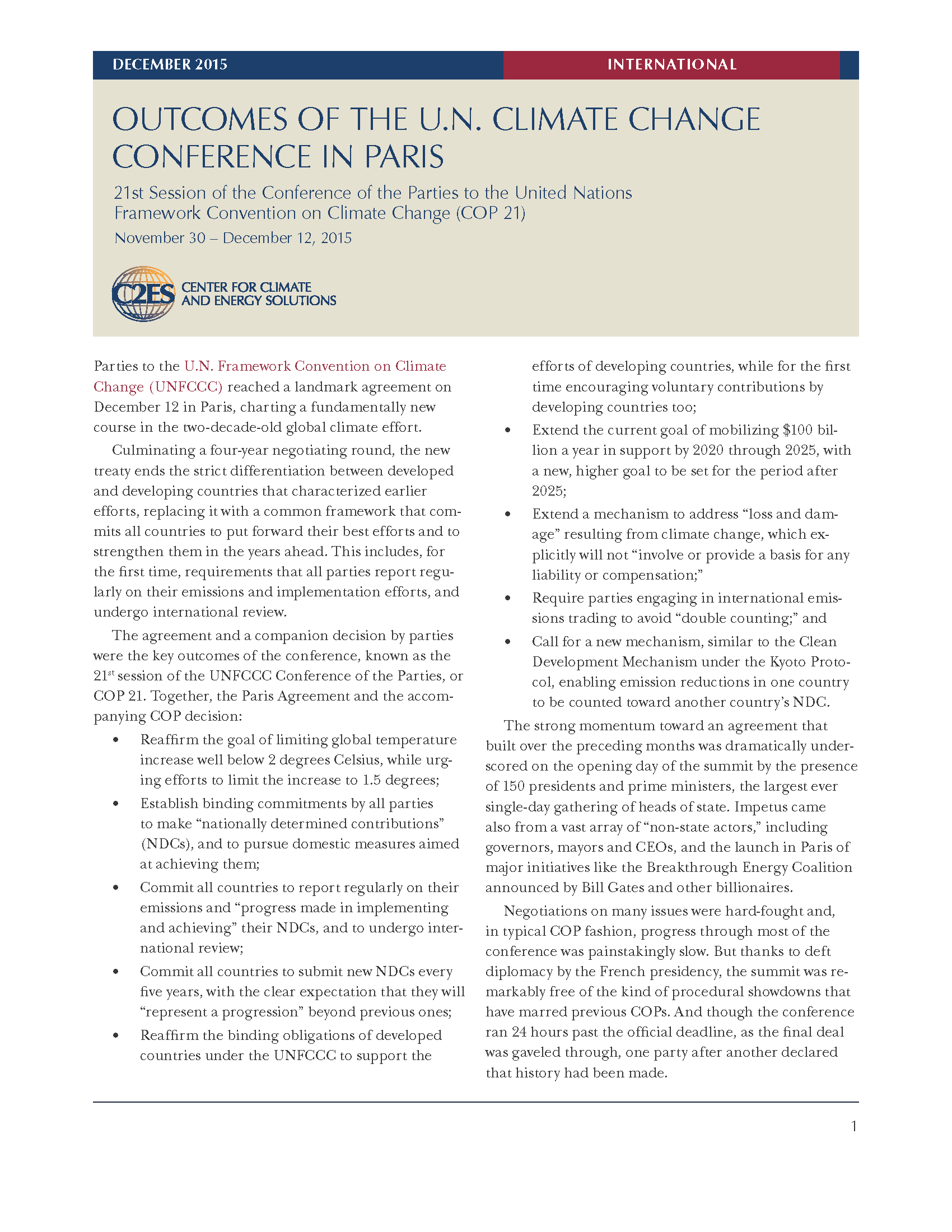Parties to the U.N. Framework Convention on Climate Change (UNFCCC) reached a landmark agreement on December 12 in Paris, charting a fundamentally new course in the two-decade-old global climate effort.