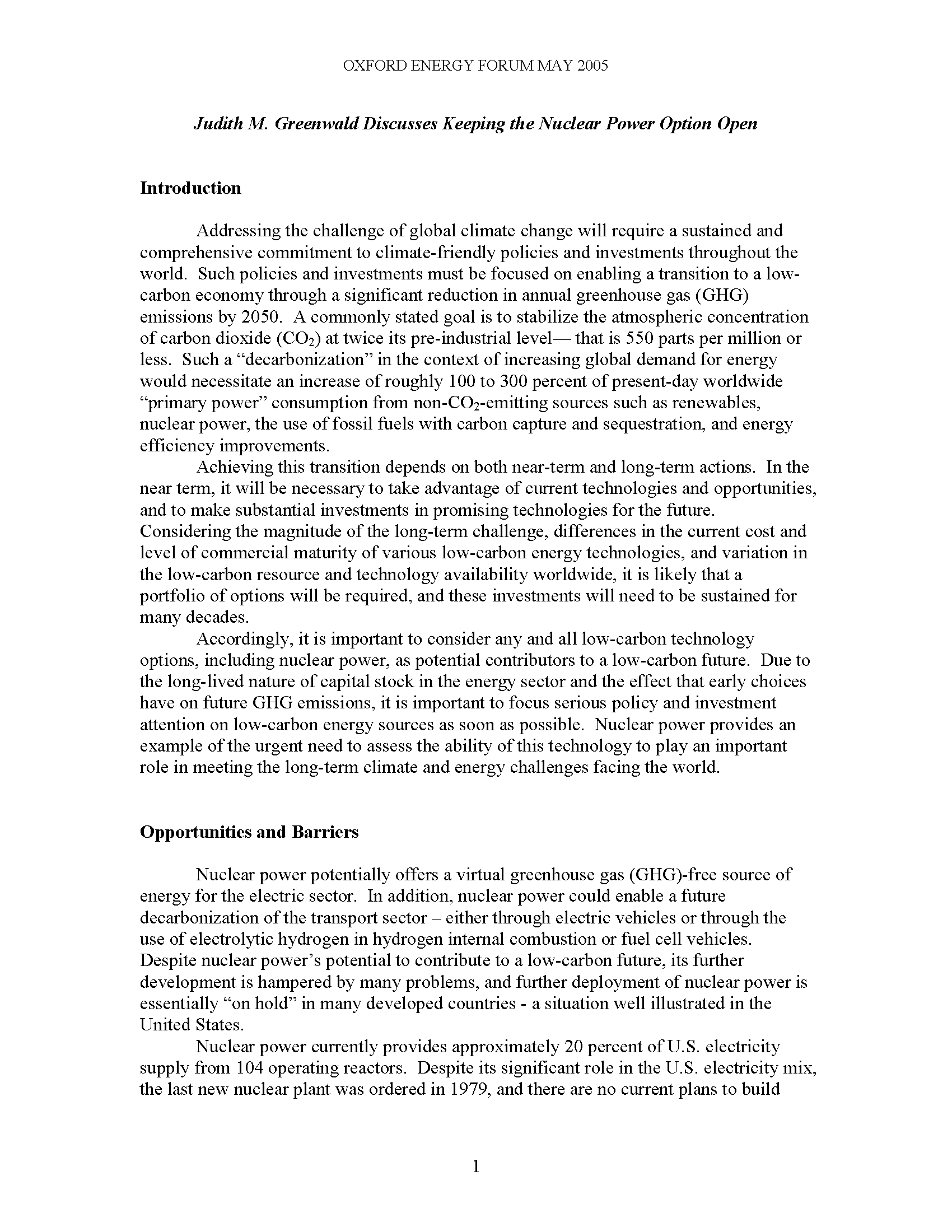 Oxford Energy Forum: Keeping the Nuclear Power Option Open