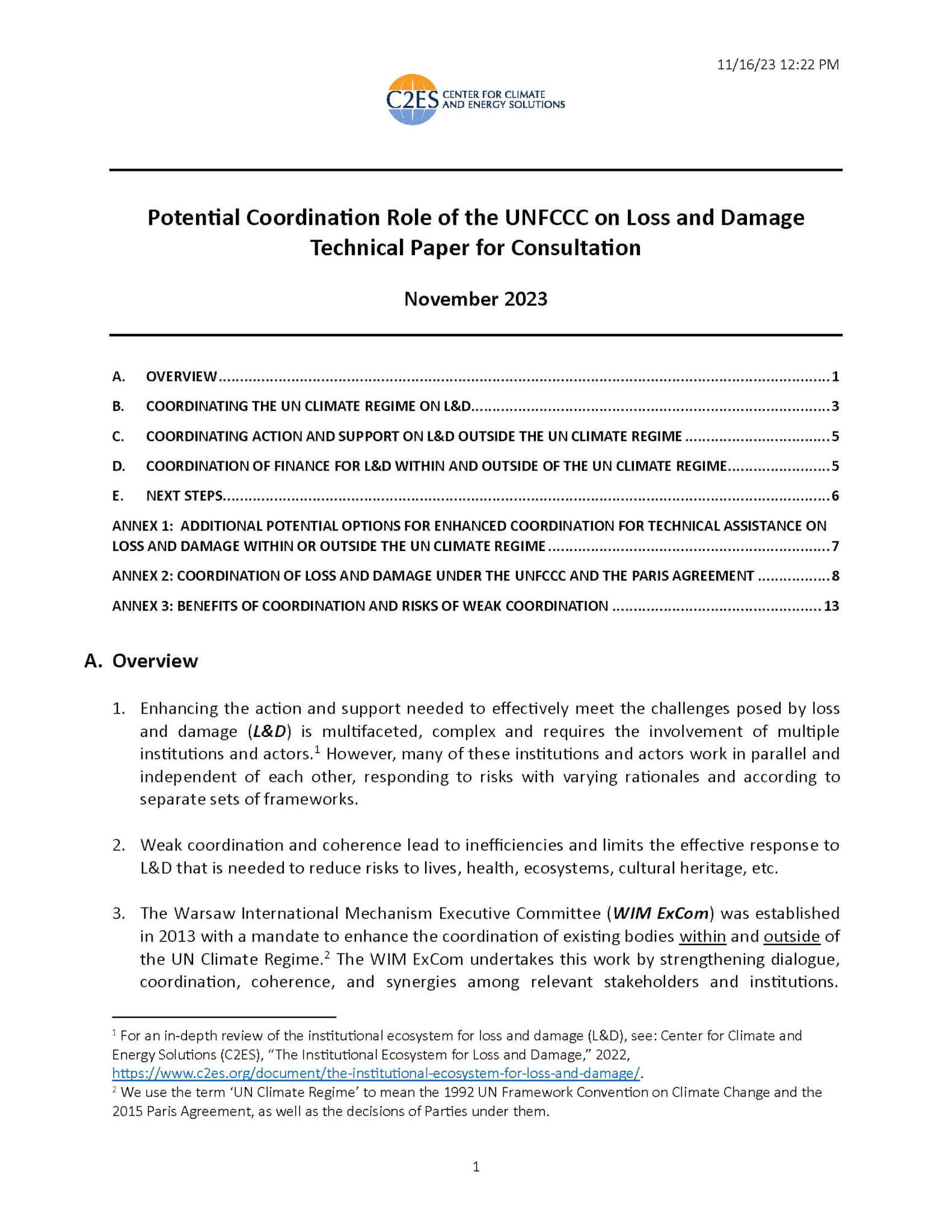 Potential Coordination Role of the UNFCCC on Loss and Damage