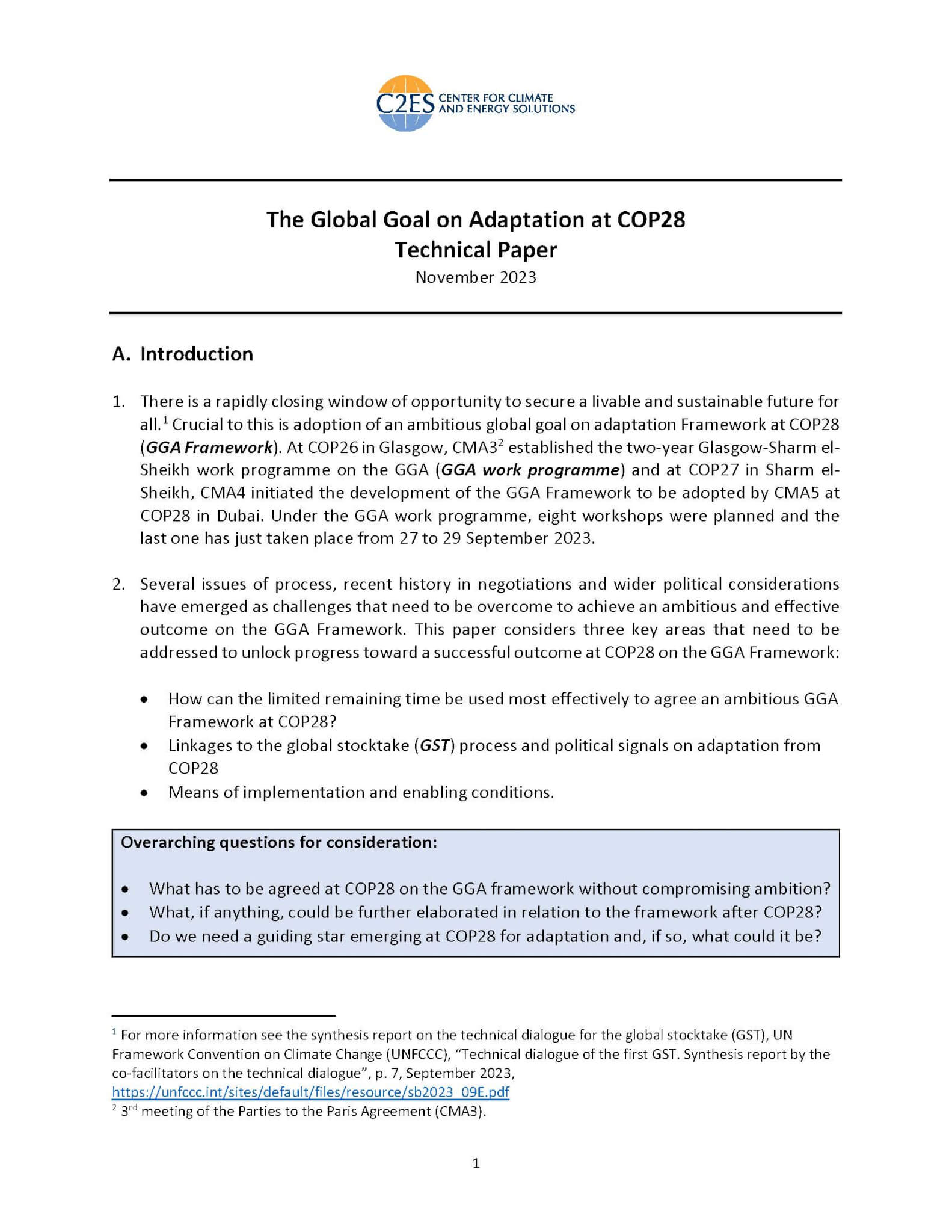 The Global Goal on Adaptation at COP28 (Technical Paper)