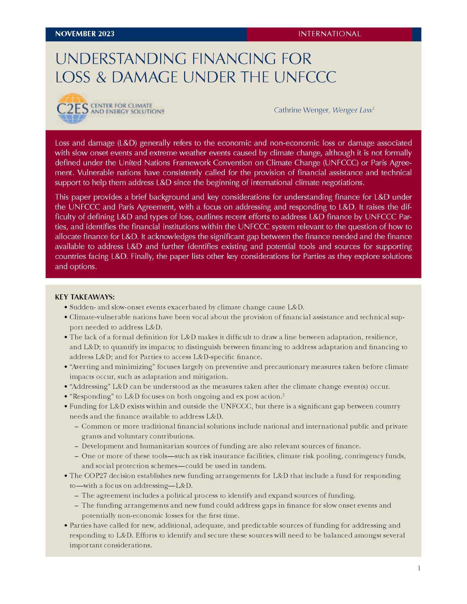This paper provides a brief background and key considerations for understanding finance for L&D under the UNFCCC and Paris Agreement, with a focus on addressing and responding to L&D. It raises the difficulty of defining L&D and types of loss, outlines recent efforts to address L&D finance by UNFCCC Parties, and identifies the financial institutions within the UNFCCC system relevant to the question of how to allocate finance for L&D. It acknowledges the significant gap between the finance needed and the finance available to address L&D and further identifies existing and potential tools and sources for supporting countries facing L&D. Finally, the paper lists other key considerations for Parties as they explore solutions and options.