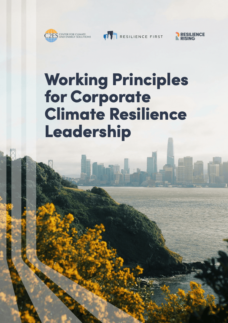As part of a new initiative to catalyze corporate climate resilience leadership, C2ES, Resilience Rising, and Resilience First, have engaged cross-sector stakeholders—including businesses, NGOs, and resilience-focused organizations—to develop guiding principles that reflect how companies can demonstrate leadership in advancing resilience to the physical impacts of climate change.